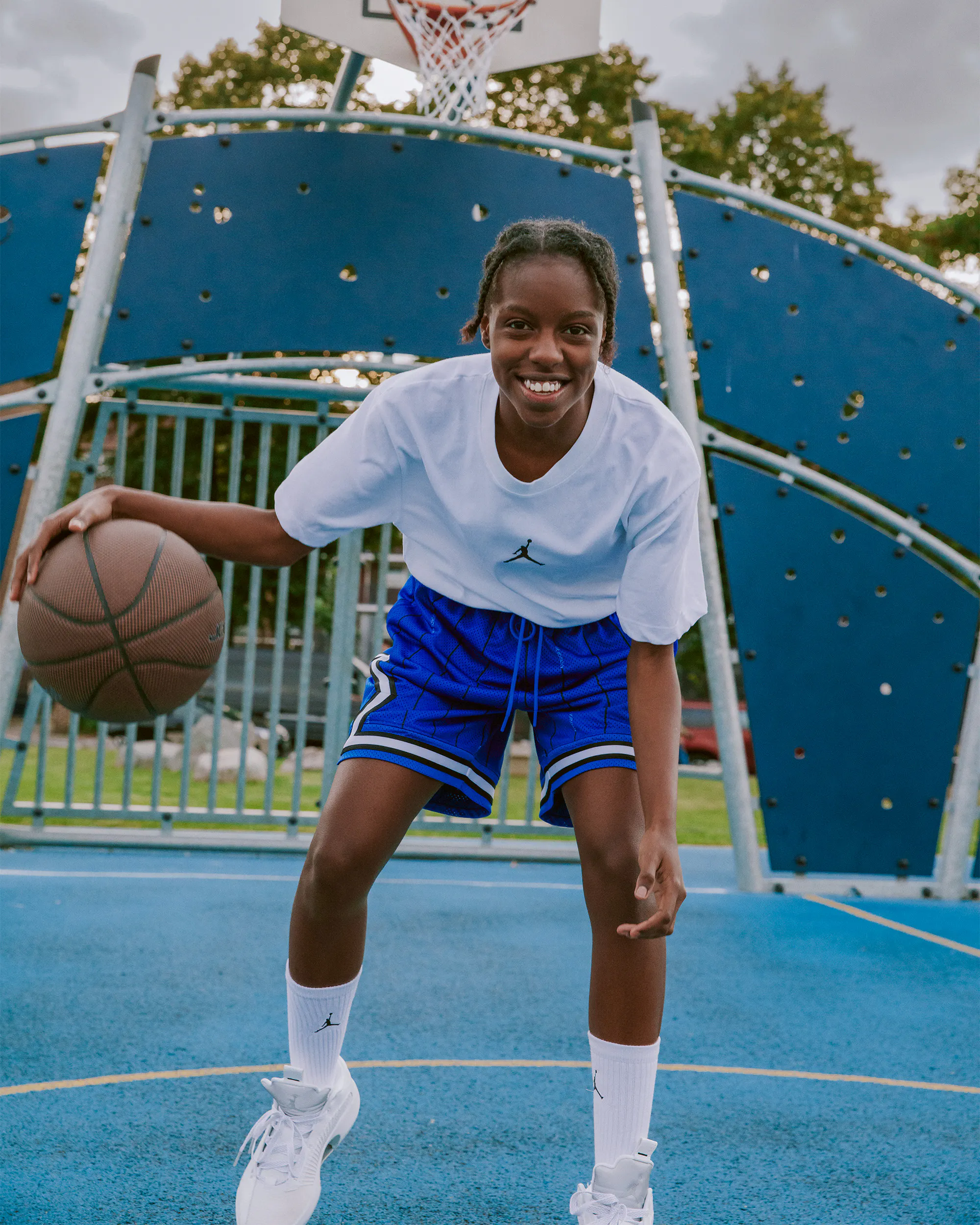 A film and stills photography exploring the Black British experience through an intergenerational conversation with Brixton’s basketball players, activists and musicians, for Jordan's first Black History campaign outside the US. With contributions from Paul Ambrosius who trained with Jordan during his 1985 visit to Brixton, writer Alex Wheatle imprisoned for his involvement in the 1981 Brixton riots and immortalised in Steve McQueen's 'Small Axe' series, and Stella Dadzie who was at the heart of the development of the Black Women’s Movement in Brixton, alongside the next generation of basketball stars and musicians.